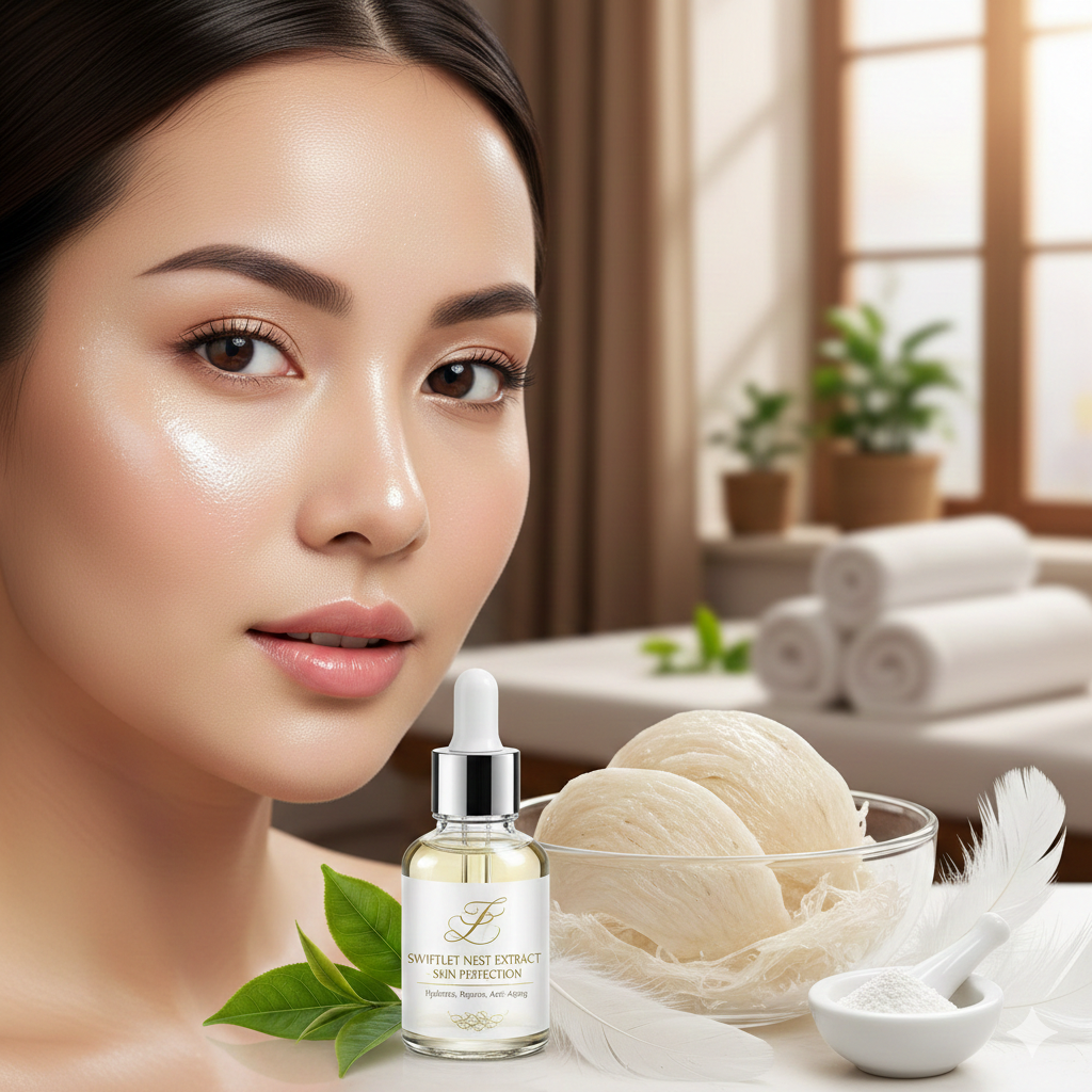 Yến sào khi thu hoạch sẽ là một tổ hợp với các sợi dãi yến cô đặc, khô và có độ dai nhất định. Tuy nhiên, khi được điều chế làm mỹ phẩm, chúng sẽ được tách và lấy thành chiết xuất dạng lỏng. Vì vậy, các hoạt chất có trong chất lỏng này sẽ gồm có glyco-proteins, vitamin B và các loại axit béo sẽ giúp cung cấp độ ẩm cho da, giúp da luôn khoẻ mạnh và đủ độ ẩm.